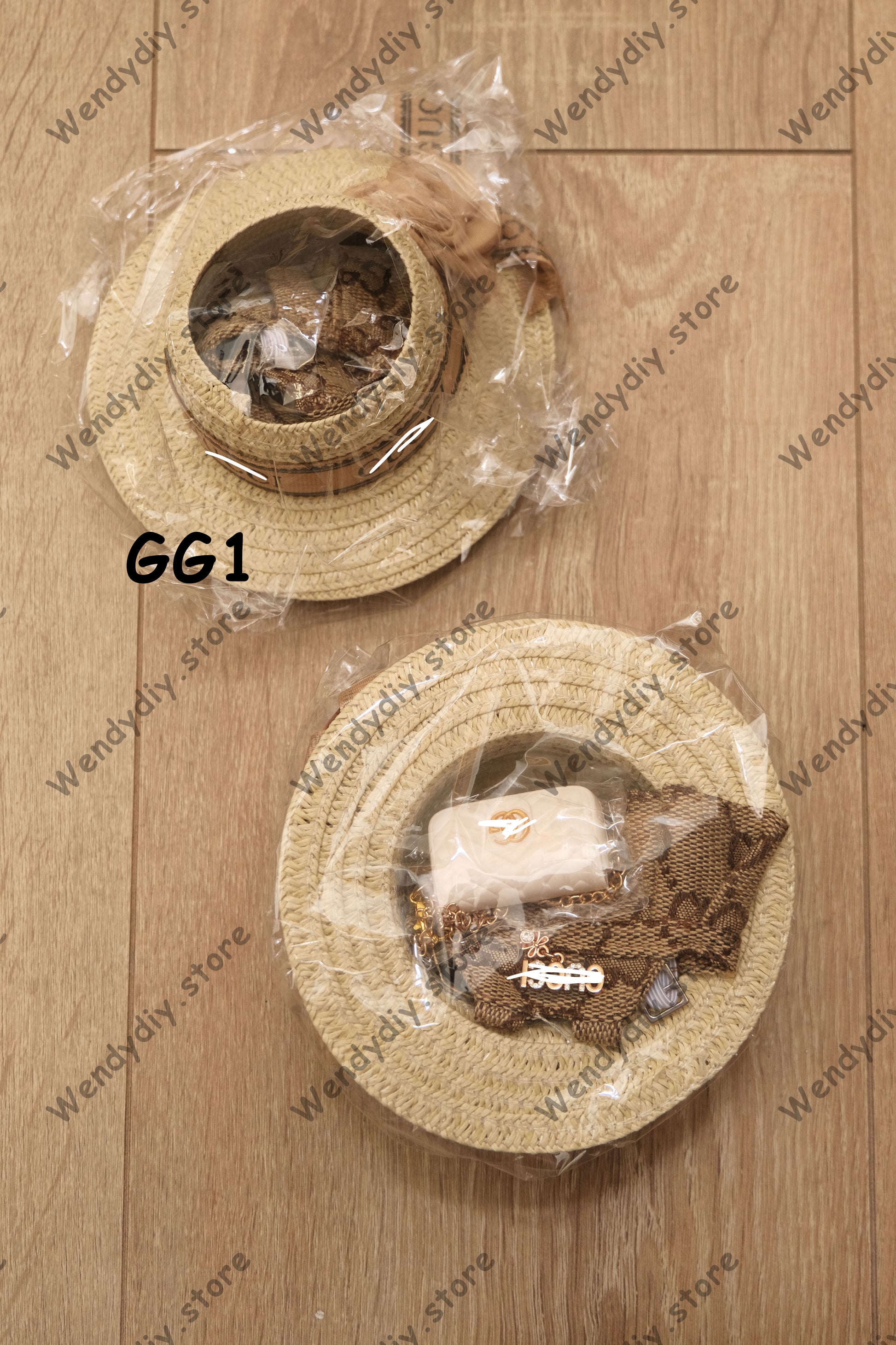 ✅A white quilted handbag with a gold chain strap and the GG logo, designed for both fashion and functionality. This set merges luxury brand aesthetics and DIY creativity, ideal for styling your Labubu doll for elegant events or chic daily wear!