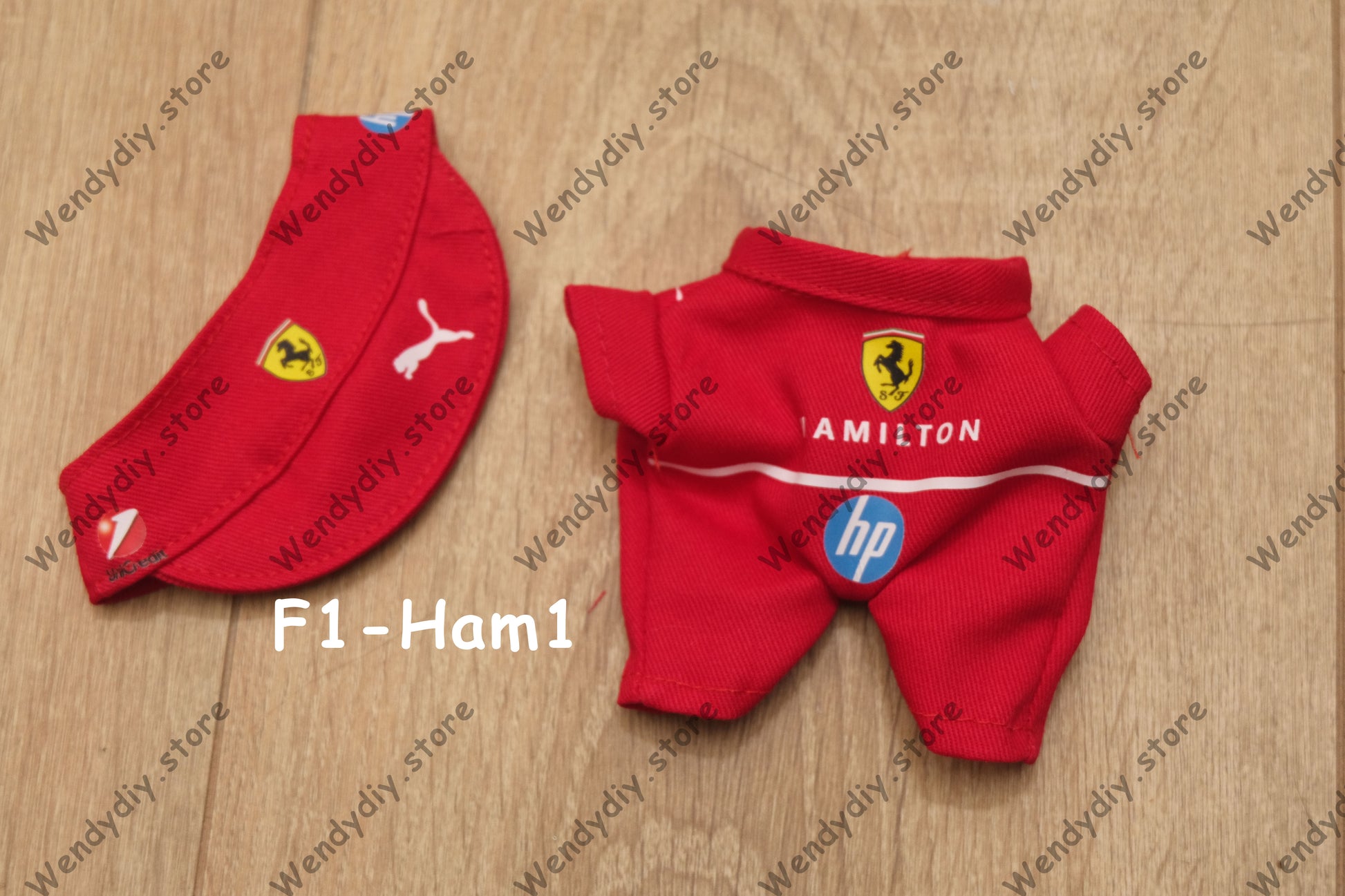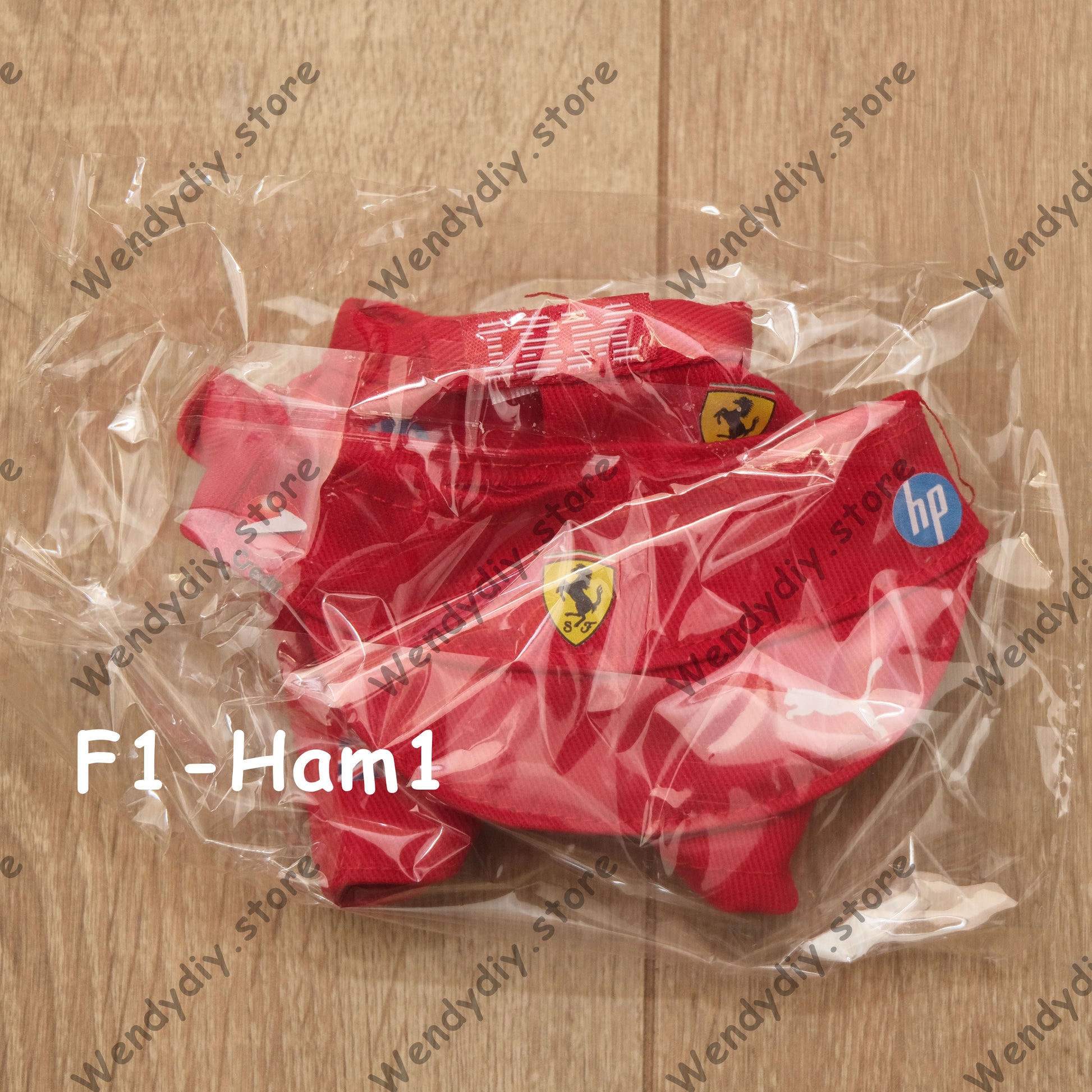 This Labubu F1 Ferrari Hamilton Racing Suit Set, a unique and adorable outfit for your Labubu plush toy. This set includes a red bucket hat with the iconic Ferrari logo and a matching racing suit featuring logos of sponsors like IBM, HP, Shell, and Hamilton. Perfect for Formula 1 fans and collectors who want to add a touch of speed and style to their Labubu collection.